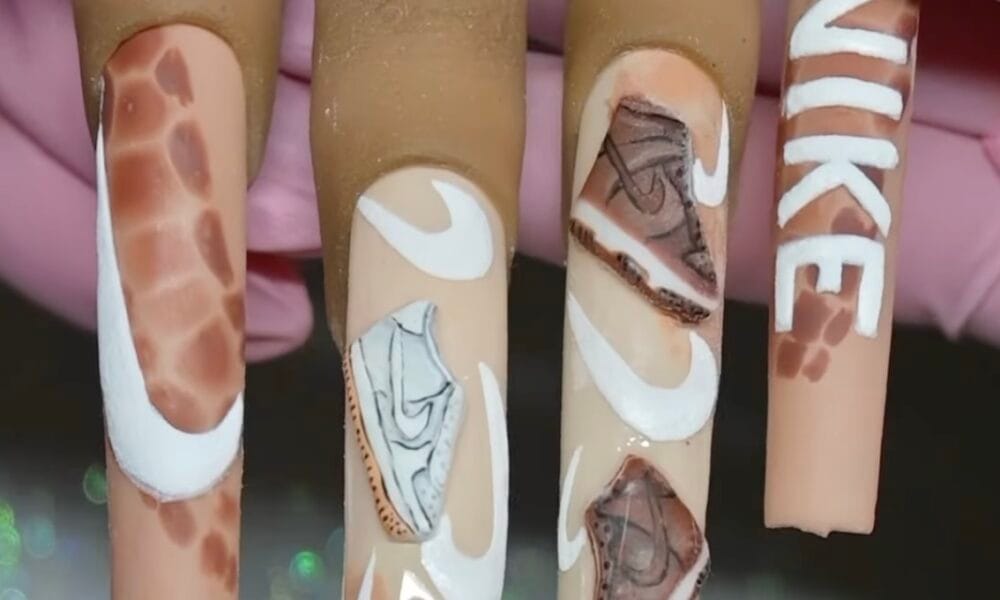 Sneakerhead nail art alert. 3D Nike swoosh and logo on press-on tips. Day 3 of the 365 Nail Art Challenge by Nails by Tam. Watch the full...