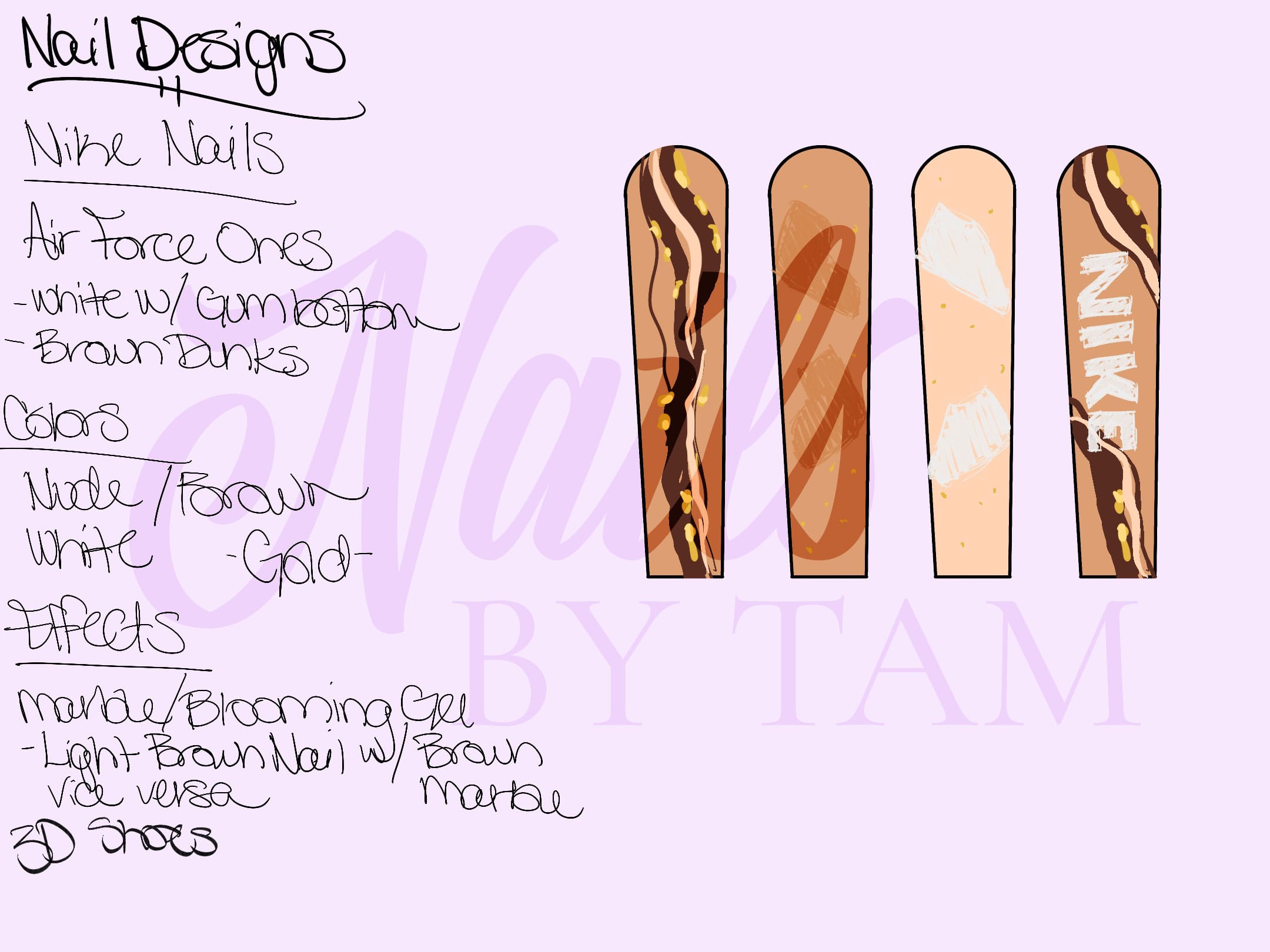 For the 3D element on these, I created a blank shape out of the 3D Gel and then painted the details on top. The nude base underneath adds a streetwear edge that balances out the branded elements without competing with them.