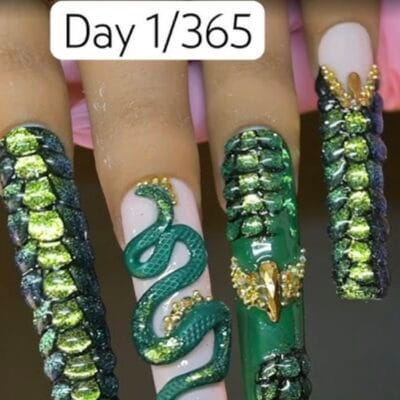 Day 3 and I’m already in my brand-inspo era. These 3D Nike nails combine two things I genuinely love, nail art and sneaker culture. We’ve got the swoosh, the wordmark, and enough texture to make any sneaker fan do a double take.